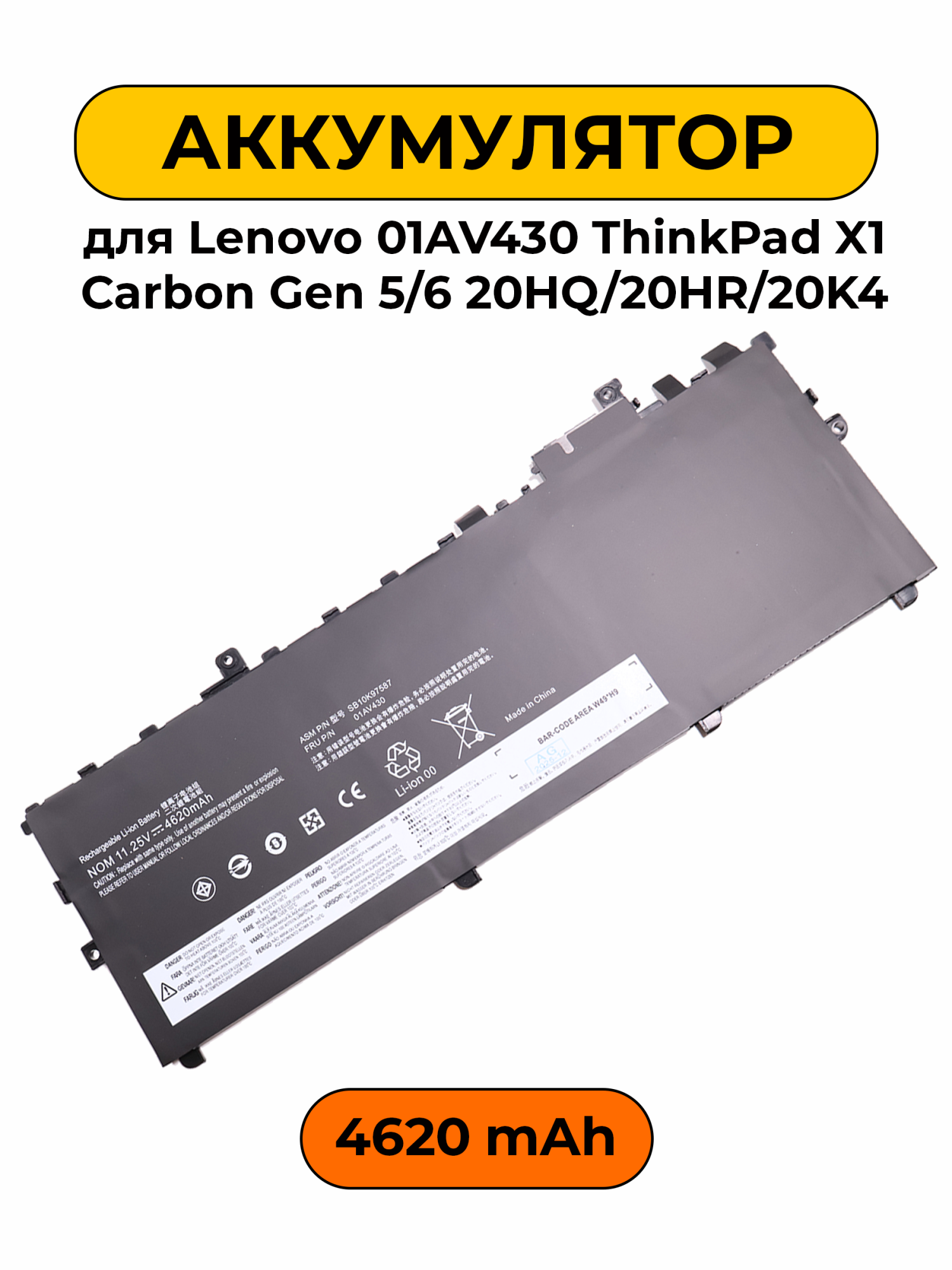 Аккумулятор Lenovo 01AV430 предназначен для ноутбуков ThinkPad X1 Carbon 5-го и 6-го поколения, а именно моделей 20HQ, 20HR и 20K4. Он станет отличным решением для замены изношенного или поврежденного аккумулятора, обеспечивая надежную работу устройства и продолжительность его использования без необходимости подключения к электросети.